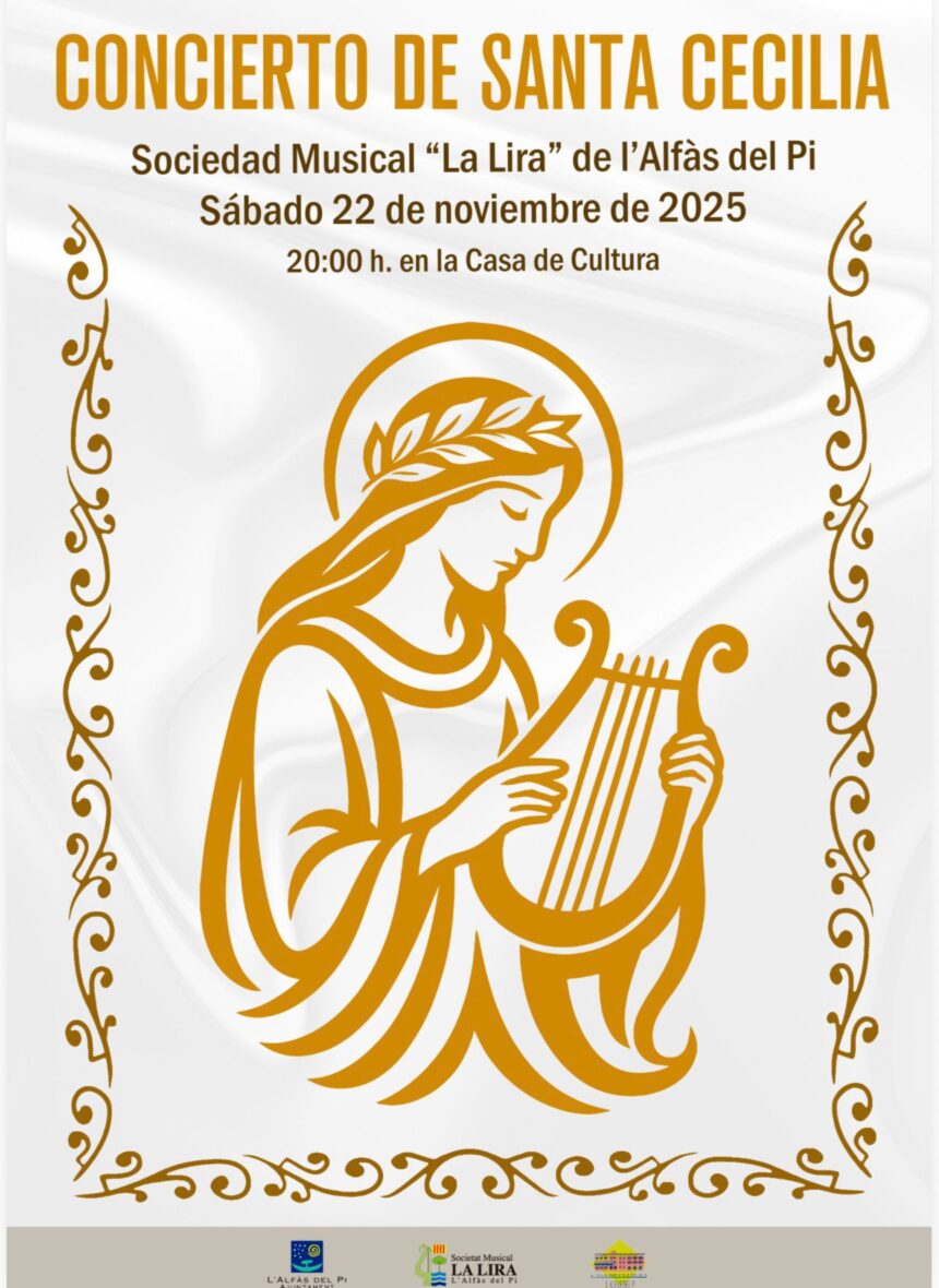 La Sociedad Musical La Lira de l’Alfàs del Pi ofrecerá el próximo sábado, día 22 de noviembre, su tradicional concierto en honor a Santa Cecilia, patrona de los músicos. El evento tendrá lugar a las 20:00h en el auditorio de la Casa de Cultura, con entrada libre hasta completar aforo. Este esperado evento, que conmemora a Santa Cecilia, es una cita ineludible para los amantes de la música en todo el mundo. A la relevancia de la fecha se suma este año la incorporación de 11 nuevos miembros a la agrupación, quienes recibirán su instrumento de manos del director, David Fernández Rodríguez. Además, se llevará a cabo la imposición de la Lira de Plata por su trayectoria a Ana Margaretto Gabilondo y David López Jáñez, un merecido reconocimiento por su entrega y constancia durante 25 años en la agrupación musical.