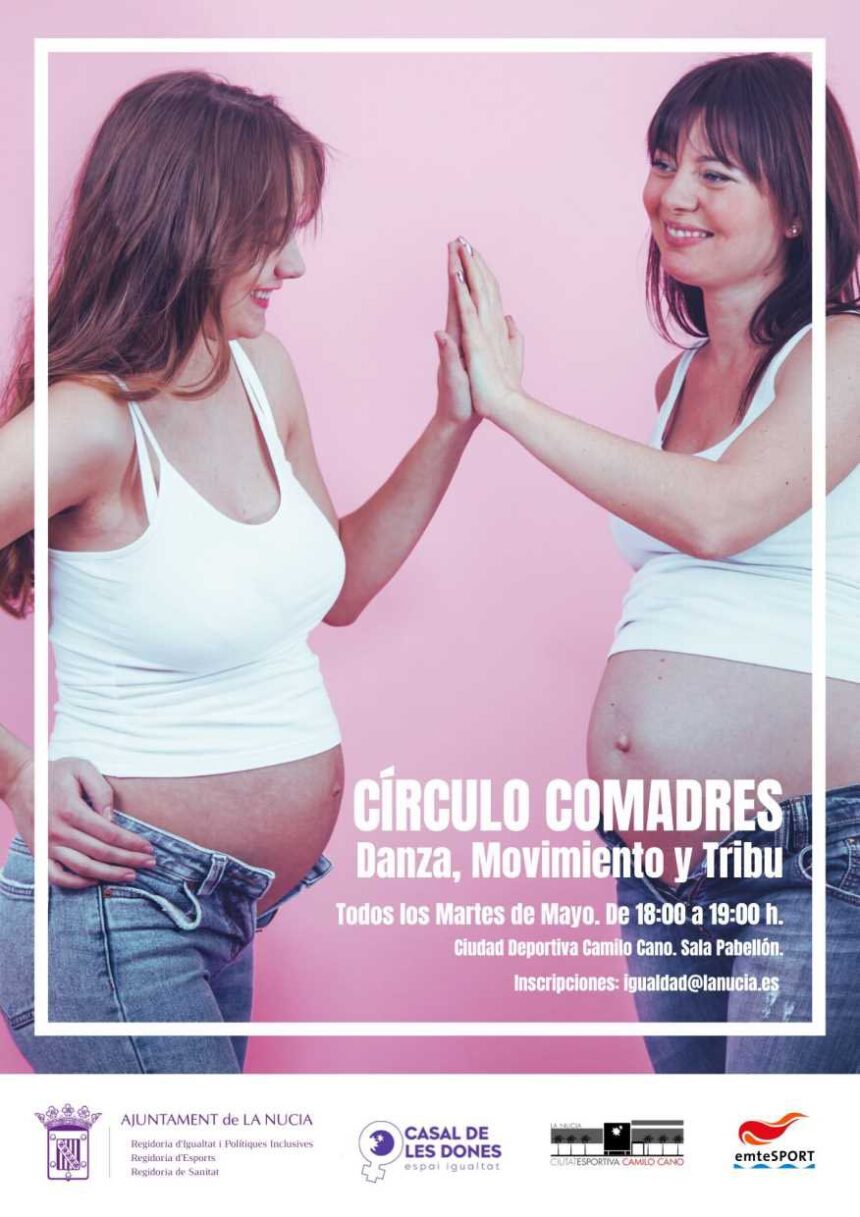 Esta semana se han abierto las inscripciones para el taller gratuito “Círculo Comadres: Danza, Movimiento y Tribu”, que se desarrollará los martes por la tarde en el Pabellón Camilo Cano. Esta actividad forma parte del proyecto “Círculo de Mujeres”, impulsado desde el Casal de les Dones-Espai Igualtat, en colaboración con Regina Gil, matrona del Centro de Salud. Todas las mujeres “embarazadas” interesadas deben inscribirse en igualdad@lanucia.es