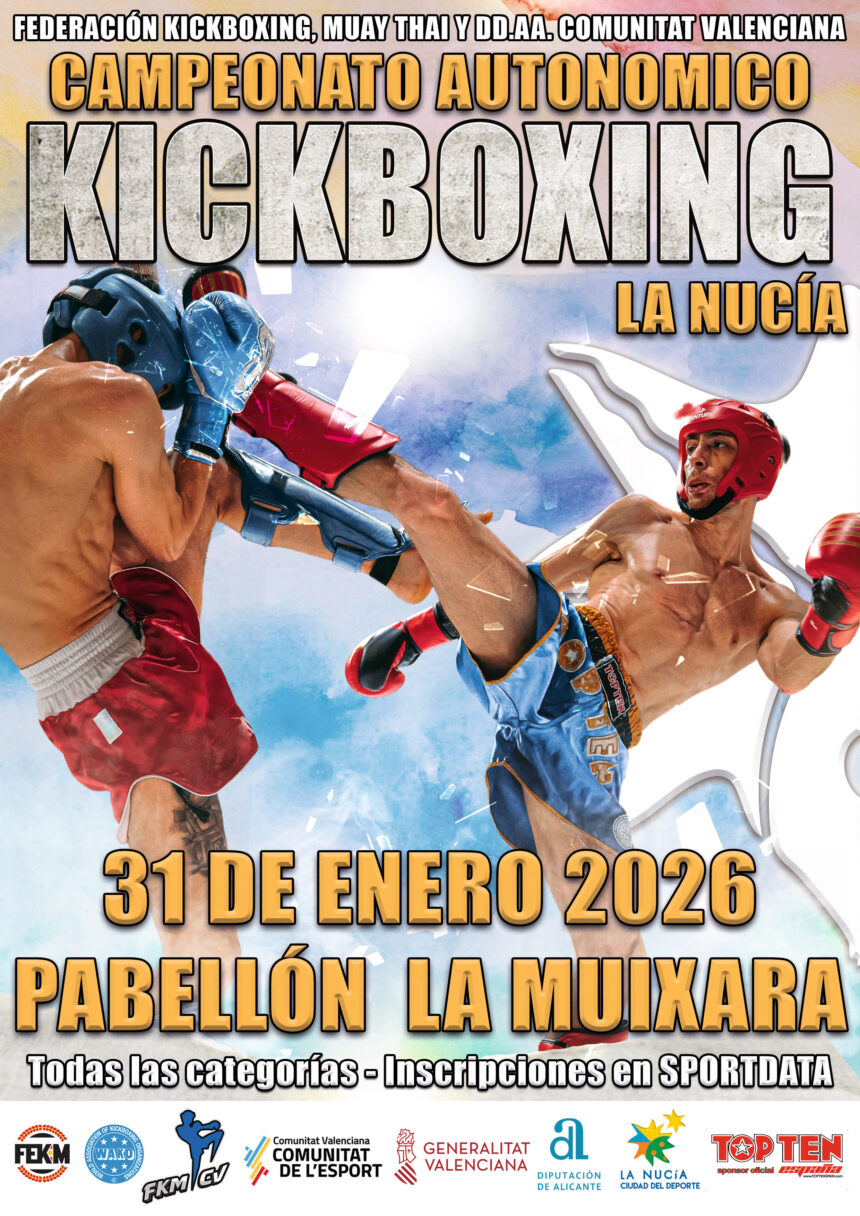 Los Campeonatos Autonómicos de Kick Boxing y Muay Thai 2026, clasificatorios para los Campeonatos de España de abril, está organizados por la Federación de Kickboxing, Muaythai y Disciplinas Asociadas, FEKM, WAKO, IFMA y la colaboración de Comunitat Valenciana- Comunitat de l’Esport, Generalitat Valenciana, Diputación de Alicante y el Ayuntamiento de La Nucía.