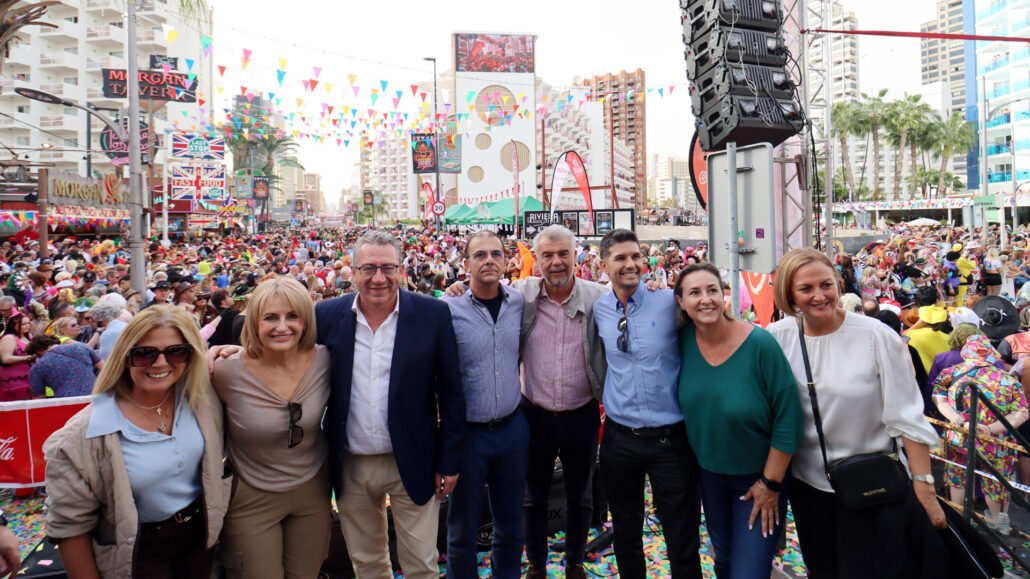 El alcalde de Benidorm, Toni Pérez, junto al concejal de Seguridad Ciudadana y Eventos, Jesús Carrobles, y otros miembros de la Corporación municipal; el presidente y la secretaria general de la patronal turística Hosbec, Fede Fuster y Nuria Montes; la gerente de Visit Benidorm, Leire Bilbao; y los comisarios de la Policía Nacional y la Policía Local, Luis Manuel Sánchez y José Carlos Amorós, han participado en esta celebración que atrae cada año a miles de turistas. De hecho, la gran mayoría viajan expresamente desde su país o desde otros lugares de España, planificando con meses de antelación sus vacaciones, para celebrar y disfrutar de este singular carnaval, que también cada año gana adeptos entre el público nacional.