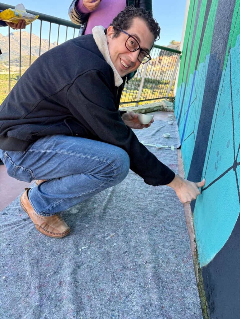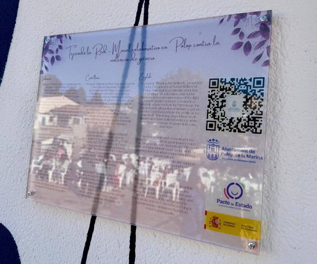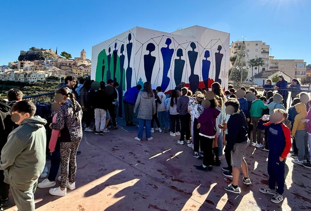 Posteriormente, se ha inaugurado el mural colaborativo “Tejiendo la red”, una obra creada por la artista Olivia Baeza con la participación los escolares que han pintado una serie de puntos que, al unirse, forman una red visual simbolizando el apoyo colectivo, la importancia de acompañar y proteger, y la fuerza de una comunidad unida frente a la violencia. Tanto los niños y niñas como el resto de asistentes han puesto su huella en el mural.