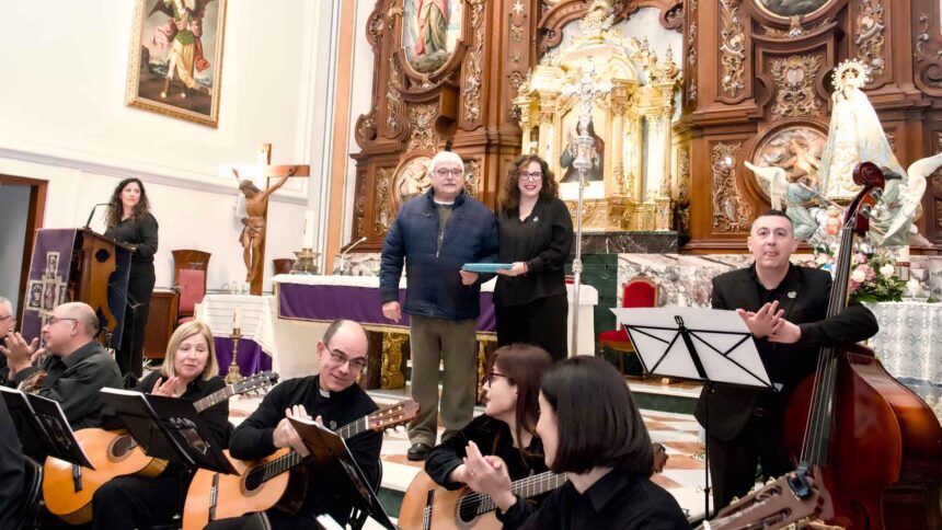 A las ocho de la tarde, el templo lleno a rebosar, ha dado la bienvenida a los integrantes de la formación musical, nombrados uno a uno desde megafonía. El alcalde de Benidorm, Toni Pérez; los concejales de Cultura y Fiestas, Jaime Jesús Pérez y Mariló Cebreros, otros miembros de la corporación municipal y el diputado autonómico, José Ramón González de Zárate, han conformado una representación institucional que, con su presencia, han mostrado su apoyo a la institución y a su presidente, Francisco Llorens, ‘Paco Rosera’, en su concierto homenaje.